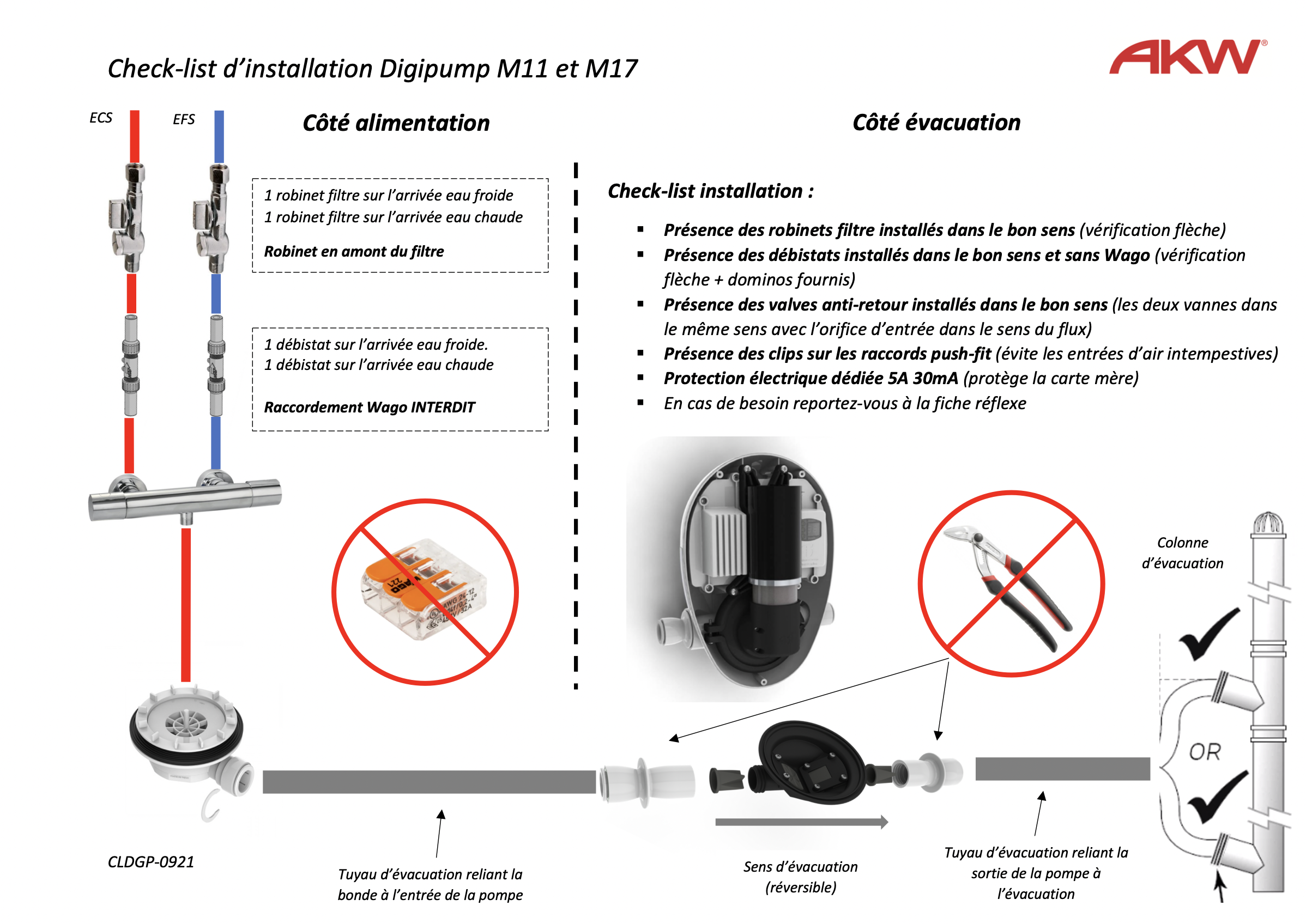 L’écoulement de l’eau ne dépasse pas la capacité de la pompe (M11=11 litres, M17=17 litres)