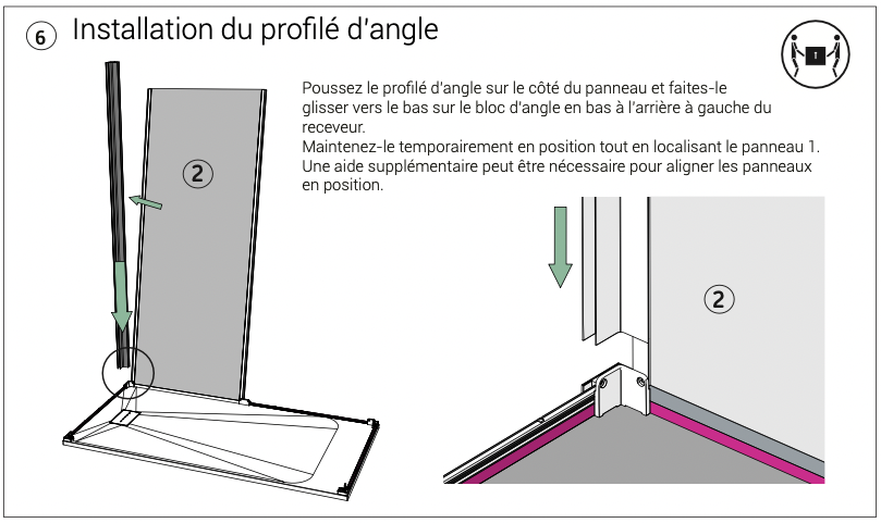 Comment installe-t-on le profilé d'angle sur le receveur ?