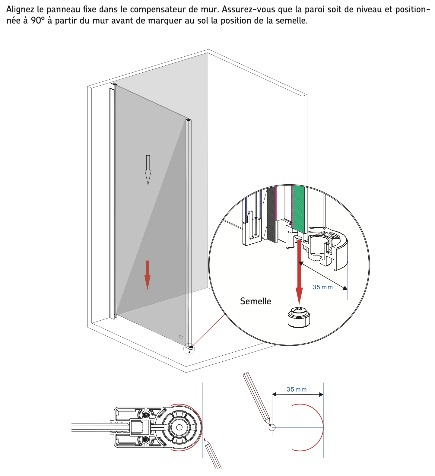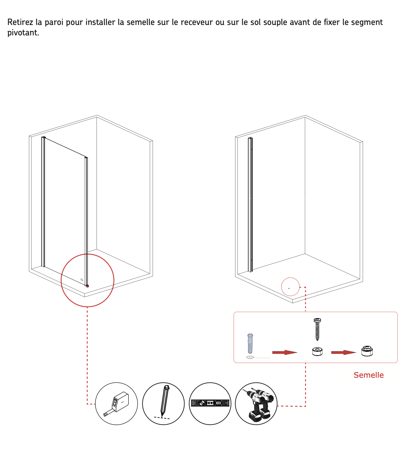 Comment installer la semelle des parois de douche LevelBest avec segment pivotant ?