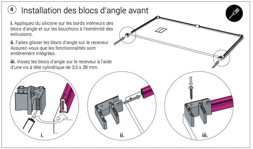 Comment installer les blocs d'angle avant sur une cabine Onyx ?