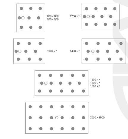 - Receveurs carrés/rectangulaires : Reportez-vous à l'image ci-dessus "COMMENT POSER UN RECEVEUR ONYX SUR PIEDS ? Suggestions de positionnements" pour une disposition optimale des pieds en fonction des dimensions du receveur
