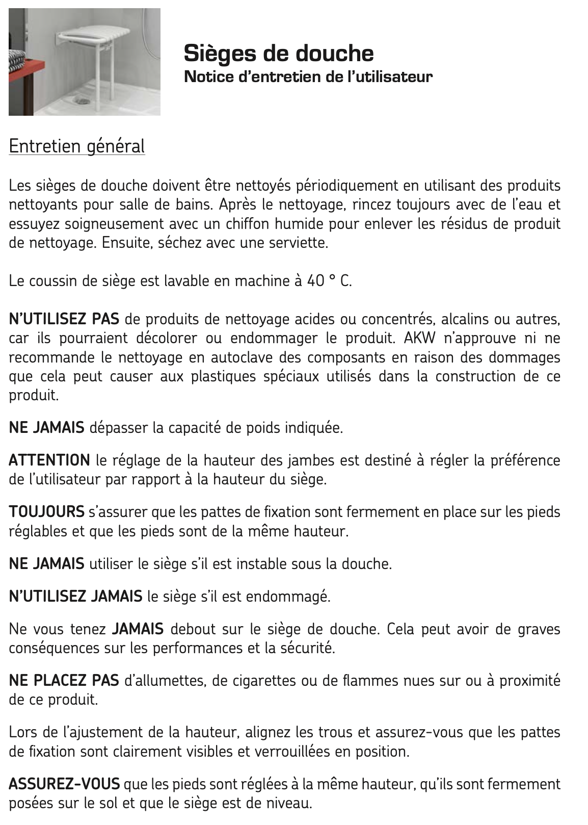 Vous souhaitez entretenir nos sièges de douches ?