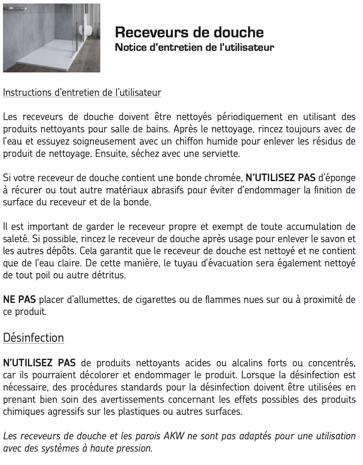 Vous souhaitez entretenir nos receveurs de douches ?