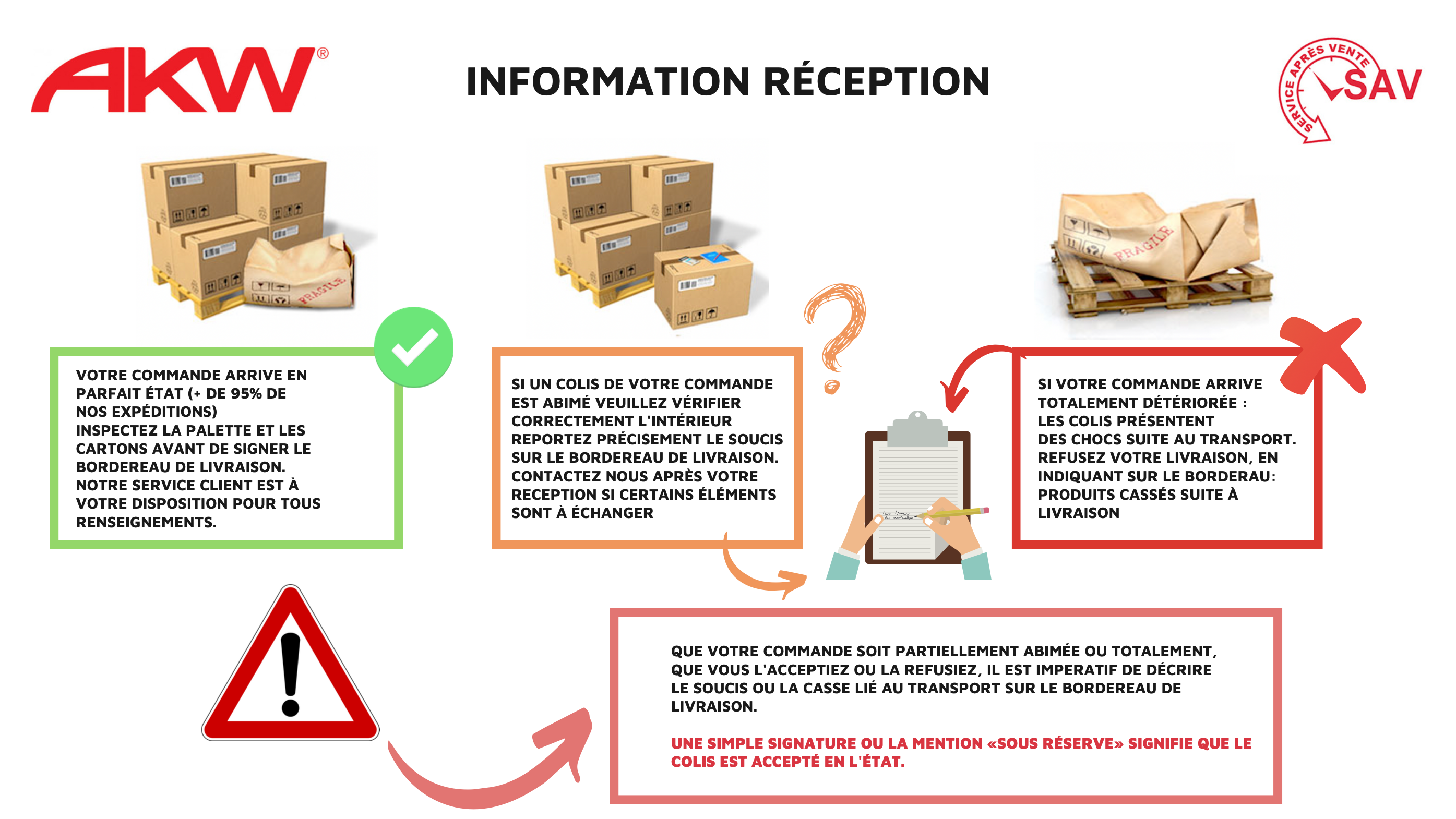 Voici comment compléter votre BL ainsi que nos conditions de réclamation et réserves recevables si l'une de ces conditions n'étaient pas respecté AKW ne pourrait être tenu pour responsable